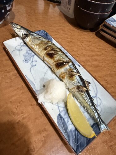 さて、この日も遅くまで仕事になったので夜ご飯としていつものさざんかさんに立ち寄ることにしました。ふとメニューを見るとさんまがありました!そういえばニュースでやっていましたね!今年のさんまは結構いいかも~って!