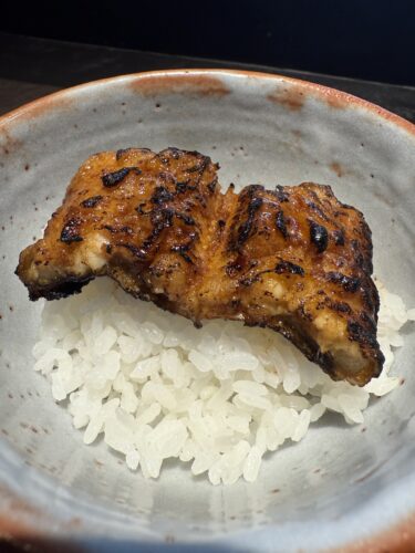 目の前でまたもやあなごが揚がっているのかなと思ったらなんとうなぎでした!うなぎの天ぷらなんて初めてです!そして炊き立てのごはんの上に!