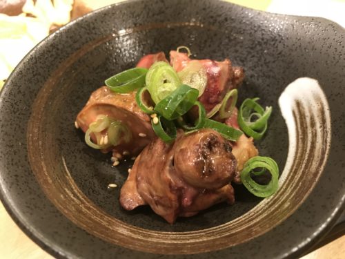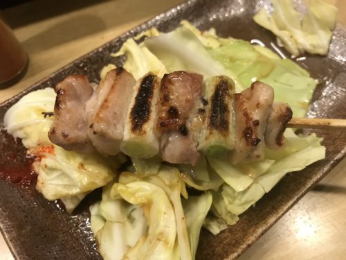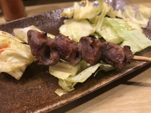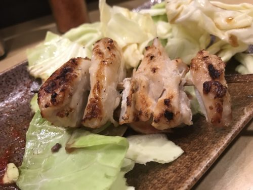 ハートランドビールで乾杯して焼き鳥をこころゆくまで楽しみます!まずはささみが登場しました!とってもおいしいです~!いつも思うのですがおまかせで焼いてもらうときに出てくる順番がいつも違うのはなぜなんでしょうか?その日の気分なのか、飽きないように順番を変えているのかどうなんだろう。聞いてみました!