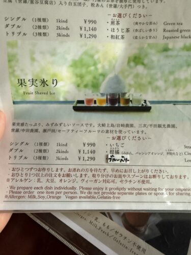 かき氷は何にしようかな~。果実氷という数種類の風味を楽しめるかき氷がきになりましたのでそちらにしてみました。