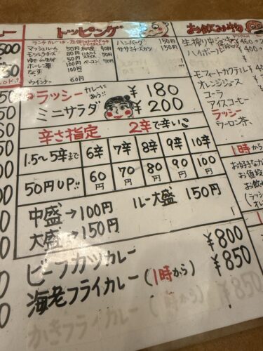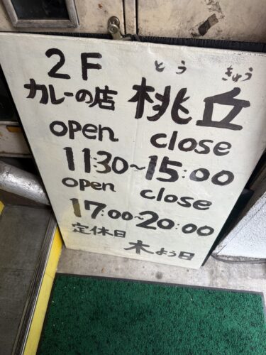 さて、最近お昼ご飯はいくちゃんのお好み焼きかこちらのカレーに行くことが多くなってきています。創業40年を超える老舗のカレー屋さん桃丘さんです。打ち合わせがあるときなどは持ち帰りを買って行うことが多いのですがこの日は久々にゆっくり店内でいただくことにしました。