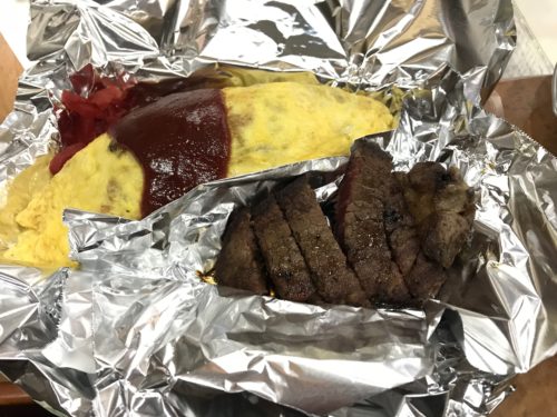 お腹いっぱいになったところでおみやをお願いして、、、まさかのヒレステーキ、オムライスセット!