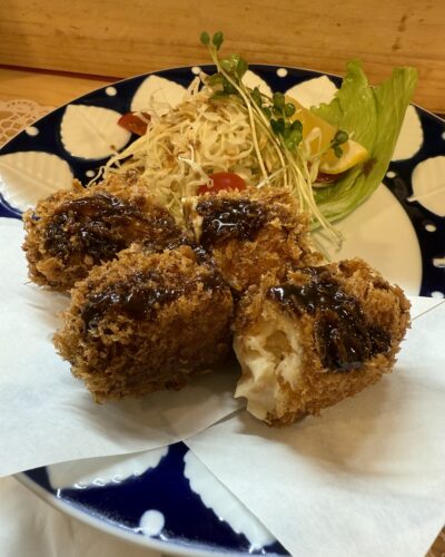 初めてメニューでみつけたクリームコロッケをお願いしました。衣がさっくさくで中のクリームもとろっとろでめちゃくちゃ美味しい~!