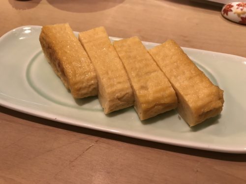 まずは生ビールで乾杯させていただきまして、まずは玉子をつまみで切っていただきました。おいしそうな玉子!いい色をしていますね~!いただくとほのかな甘みがたまりませんね~!二軒目で訪れていたのでお酒が入っていたせいか玉子の甘みが体にしみわたりました。