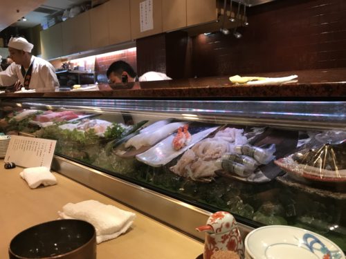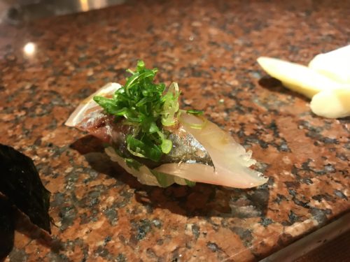 ショーケースにはネタがびっしりと!どれもとってもおいしそう!お腹の隙間があんまりない状態だったのでしっかり選んでいかないと笑。最初はあじを握ってもらいました。とってもおいしい~!最高ですね!