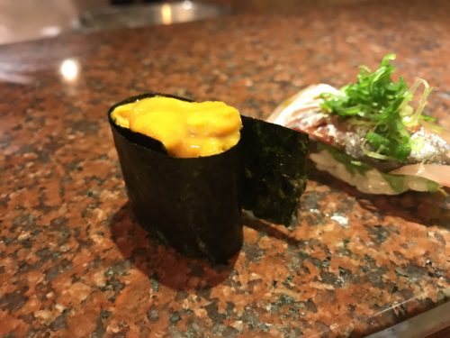 つづいてウニをお願いしました!海苔の香りがたまりませんね~!すばらしくおいしいです!雲丹の色合いもこれまた美しかったです!