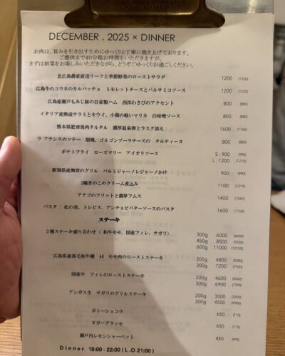 さて、先日忘年会のはしごでこちらのお店にお邪魔してきました!パークサイドホテル広島から歩いてすぐのところにありますNumber3さんです。お昼には何度も伺っていますが夜は初めて伺いました。美味しいお肉がいただけるお店です!