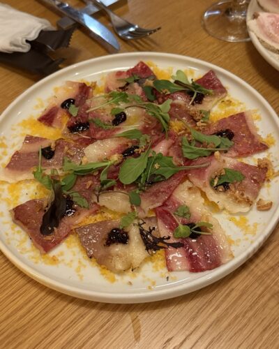 最初は広島名物のコウネから!ミモレットチーズとバルサミコで合わせてありました。いただいてみると確かにコウネですがヨーロッパの雰囲気を感じましたね!とっても美味しい~!