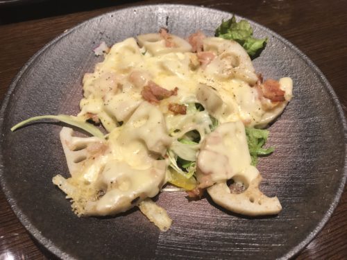 れんこんチーズが登場しました!しんごさんのメニューの中でもかなり気に入っているメニューです!シャキシャキのれんこんにたっぷりとチーズがかかっていて最高においしいです!