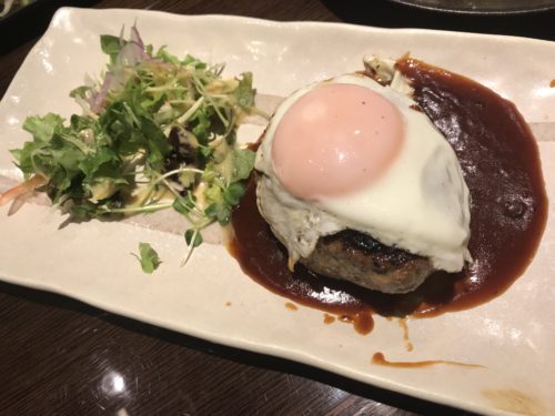 続いてハンバーグが登場しました!注文してからハンバーグを形成してじっくり焼いていくので時間がかかります。早めに注文しておけばちょうどよく出してもらえますよ。いうまでもなく超がつくおいしさです!肉!!って感じがたまりませんね~!