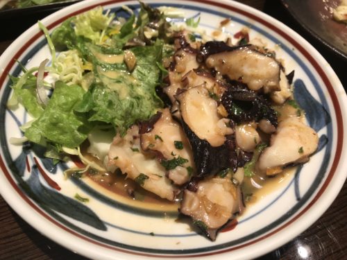 タコガーリックをお願いしました!たっぷりのバターとガーリックでいただくタコはめちゃくちゃおいしいですよ~!こんなにおいしいタコガーリックもなかなか珍しいです!