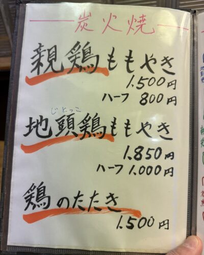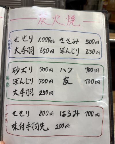 先付の鳥皮をいただきながら今日は何にしようかな~とメニューをながめます。