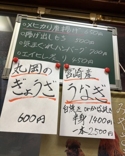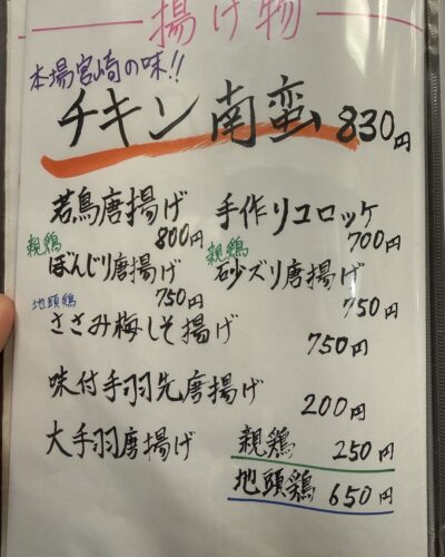 チキン南蛮や鳥のもも焼きは必ず食べますが他に何かないかな~とみているとカウンターの後ろの看板にいろいろと!