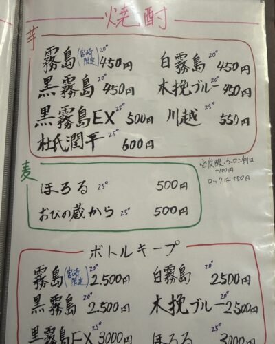そして宮崎でしか販売されていない霧島をロックでいただきます。とっても美味しい~!広島で飲めるのはここだけかもしれないです。