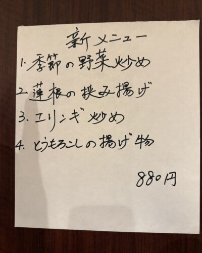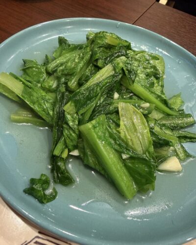 この日のおすすめメニューもありました!そこから季節の野菜炒めをお願いしました!青菜炒めがめちゃくちゃ美味しい~!ガーリック風味が最高ですね!