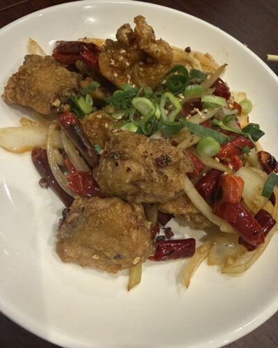 この日は最終営業日ということとかなり遅くに伺ったので名物のワンタンが売り切れていました!さらにご飯ものもすべて売り切れ!でも売り切れているってことは人気ってことですから喜ばしいことですね~!ということでまだあったピリ辛唐揚げをお願いしました。