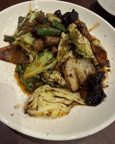 ではホイコーローを頂きましょう!キャベツと豚肉を一緒にいただきます!めちゃうま~!本場の味がいいですね~!レモンチューハイがすすみますよ~!