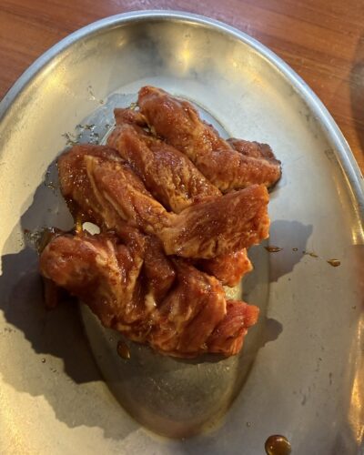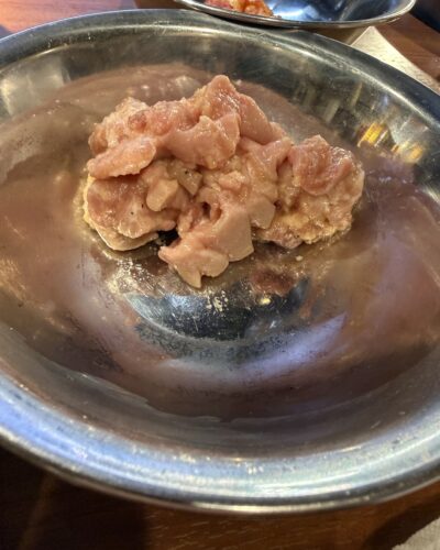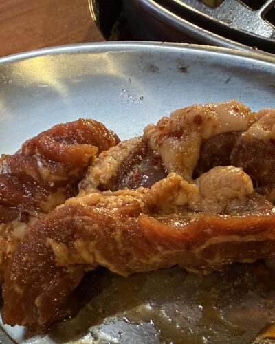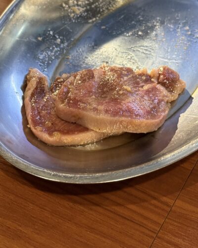 続いて豚のタンが登場!写真を撮るのが遅れちゃいました(笑)。しっかり焼いていただくとこれめっちゃ柔らかくて美味しい~!聞かなかったら牛タンだと思って食べていたかも!