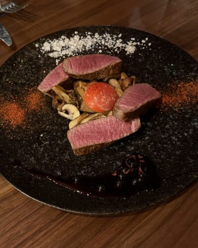 さて、先日ご紹介いたしました上六ワインさんの続きです。次の白ワインも美味しくいただいているとそこへお肉が登場しました!ヒレ肉をお願いしていたのですが、素晴らしいヒレ肉が!めちゃくちゃ美味しそう~!まずはそのままいただいてみます。ほどよい柔らかさと肉の味がしっかりしますね~。塩やバルサミコなどと合わせていただきましたが大満足の一品でした!