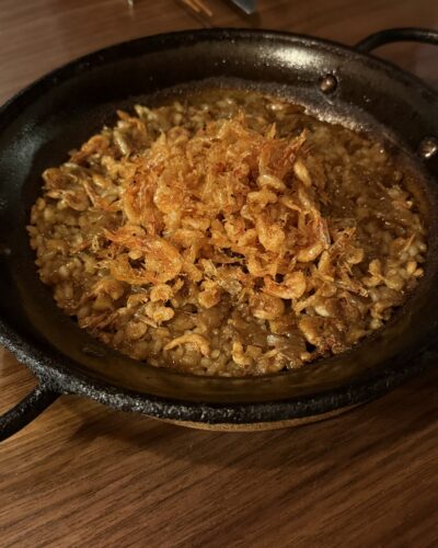 上六ワインさんにお邪魔する前にパエリアをしっかり頼んだ方がいいよとおすすめしていただいていたので、この日はパエリアを3つお願いしました。