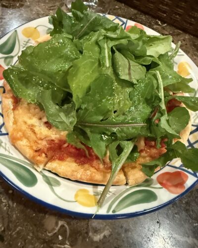さらにいつものルッコラとモッツァレラのピザをいただきます。チーズたっぷり最高です!