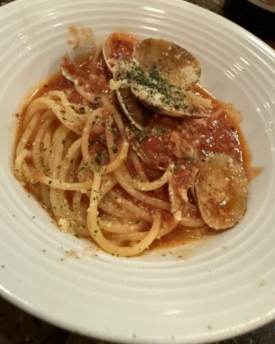 イタリア定番のパスタのボンゴレロッソも頂きました~!