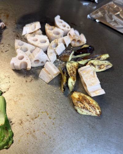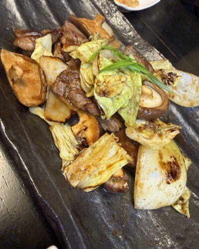 続いてハラミだったでしょうか?お肉と野菜を炒めたものが登場しました!写真だけみたらそんなにボリュームを感じないかもしれませんが結構なボリュームでみんなびっくり!