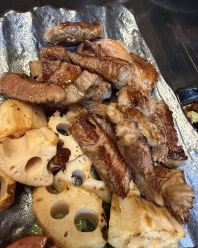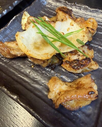 次はホルモンを焼いてくださいました。プリップリのホルモン!いただいてみると脂の部分がとっても甘くて美味しい~!
