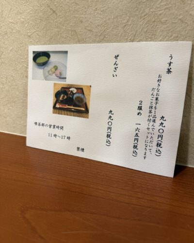 ふとメニューをみてみるとおや!ぜんざいあるんだ!今まで知らなかったです。そういえばいつも夏のころにかき氷を食べに行っていたので冬にくることがあまりなかったからですね。