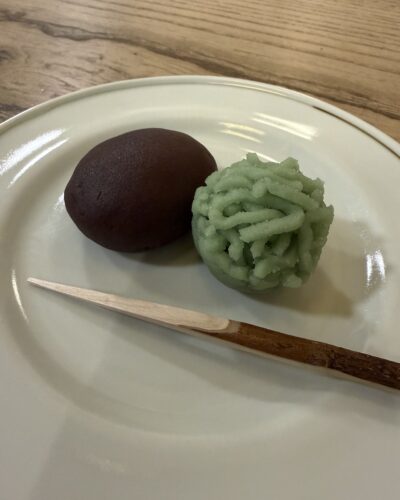 あとおはぎもあったのでおはぎも一つ。みよしのさんのおはぎはめちゃめちゃ美味しいですよ~!お抹茶も一緒にお願いしました。