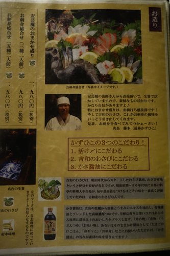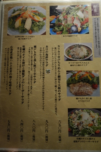 生ビールをお願いしてお通しをいただきながらメニューをみてみると、広島の厳選された食材を使用されていますね~!どれもおいしそう!