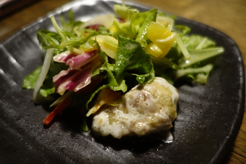 まずはサラダから!なんと牡蠣のオイル漬けが入っていました!いけますね~!おいしい!
