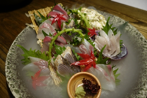 続いてお刺身の盛り合わせをお願いしました!鯛、さわら、ぶり、そしてアナゴが!鮮度が命のアナゴが入ってるなんて!どれもおいしかったですが、鯛が特においしかったです!