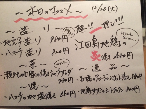 ここで本日のメニューがあることに気づいてみてみると、、うわ!江田島地鶏が入っているじゃないですか!これはいっときましょう!ムネ肉とモモ肉両方ありました!いただくと、、やっぱりおいしい~!すばらしい~!さすが江田島地鶏!!ちなみに帝釈峡しゃも地鶏がなくなったので広島で地鶏は江田島地鶏のみになってると思います!