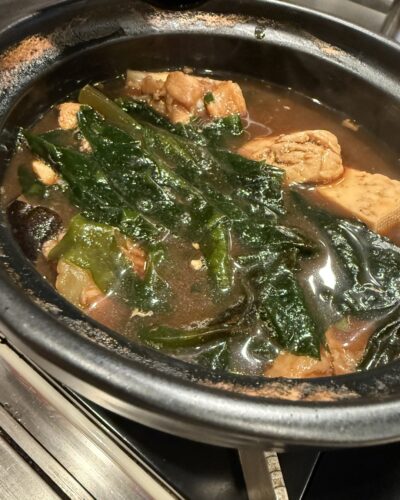 出来上がったあんこう鍋をいただいてみるとめっちゃ美味しい~!最高!あん肝がこれまためちゃくちゃ美味しいです!