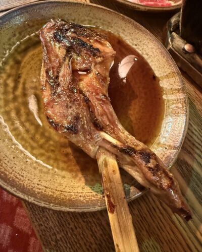 続いて山賊焼きが登場しました!懐かしいな~、久々にいただきます。このタレの味かわってないですね~!懐かしい味です!柔らかくて美味しい~!私は軟骨の部分までしっかりいただくので手がかなり汚れますがかぶりついたほうが食べやすいですね~!美味しい~!
