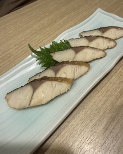 続いて鯖の燻製をいただきます!ほどよい燻製具合で食べやすい~!日本酒があいますね~!