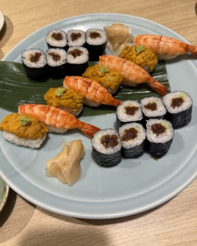 お祝いだったので結構飲みすぎてしまってなかなかお鮨までたどりつけなかったのですがやっぱりどうしても食べたかったのでウニ、海老、かんぴょう巻きをお願いしました!どれもとってもおいしかったです~!