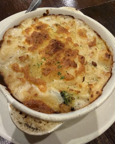 シーフードグラタンもありますよ~!洋食系も豊富なのでどなたといっても安心ですね~!あまり濃すぎない味付けなのがありがたいです~!とっても食べやすい~!