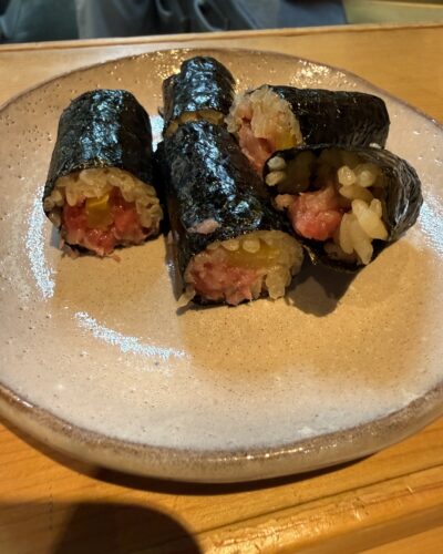 追加しちゃいましてトロタク!急にお願いしてもさっと作ってくださいます。トロも惜しげもなくいれてくださるんですよね~。気前がいい!海苔の香りが素晴らしくてほんと美味しい~!