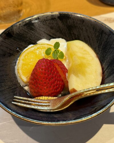 最後は季節の果物とブラマンジェ!りんごはこうとくでしたが蜜がすんごく入っててびっくり!