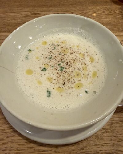 スープは菊芋のポタージュでした。菊芋ってほんと万能ですね~。ポタージュにしてもとっても美味しい~!そのまま食べてもおいしいですしね~!