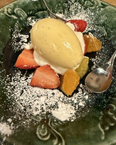 最後は旬の果物とバニラアイスをいただきました~!美味しいアイス!満たされました~!
