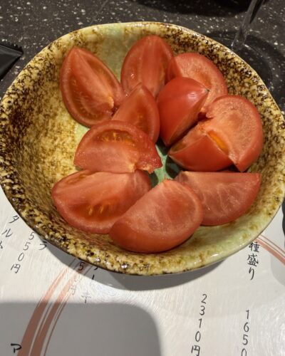 メニューをみてみると美味しそうなお料理が!まずはフルーツトマトからいただきます!酸味と甘みのバランスが素晴らしいトマトでした!
