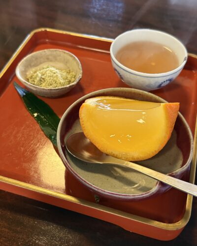 最後はデザートでれんこん餅といよかんのゼリー!