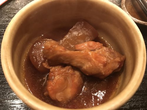 手羽と大根の煮物が登場しました!ほどよい柔らかさと味付けがいいですね~!メニューに載せたらいいのに~って思わず言ってしまうくらいおいしいです~!