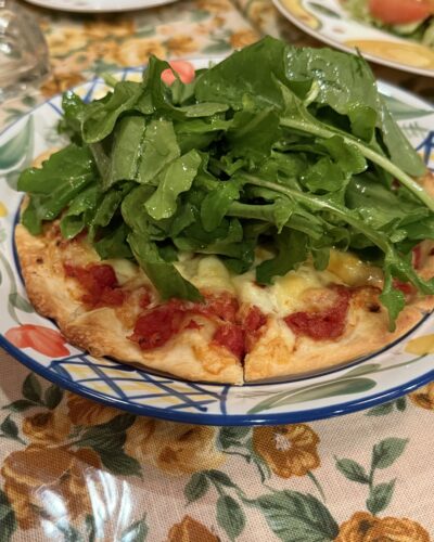 みんなでつまむにはやっぱりモッツァレラとルッコラのピザですよね~!マンジャーレさんの代名詞のルッコラたっぷり!私この半年で今まで食べてきたであろうルッコラの総量を完全に超えていると思います。もうめちゃくちゃ美味しい~!
