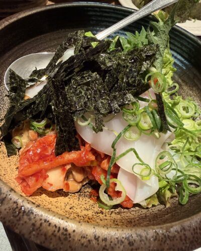 イカ納豆キムチもおすすめですよ~!結構ボリューム満点ですからね~!しっかり混ぜていただきます~!納豆とキムチとイカの相性抜群ですね~!