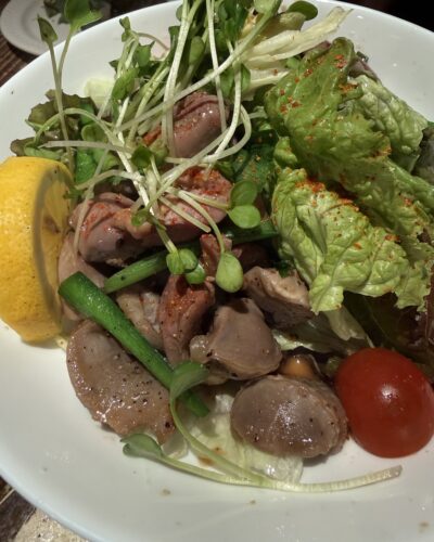 ここでお肉が登場しました!まずは鳥のハラミから!鳥のハラミって珍しいですよね~!とってもジューシーで弾力があってめちゃうまです~!ボリュームも満点!これで1000円を切ってくる値段設定なのがほんとありがたいです~!
