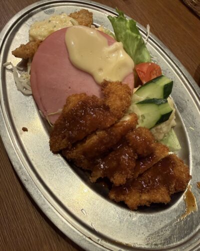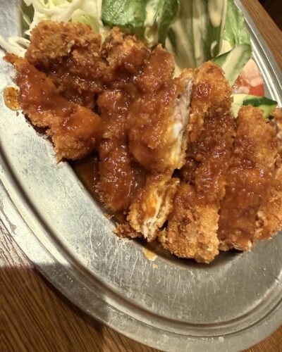 続いてチキンカツをお願いしました!アラスカさんのチキンカツは肉厚でボリュームあるんですよね~!そしてとってもジューシーで柔らかくてめちゃ美味しいんですよ~!